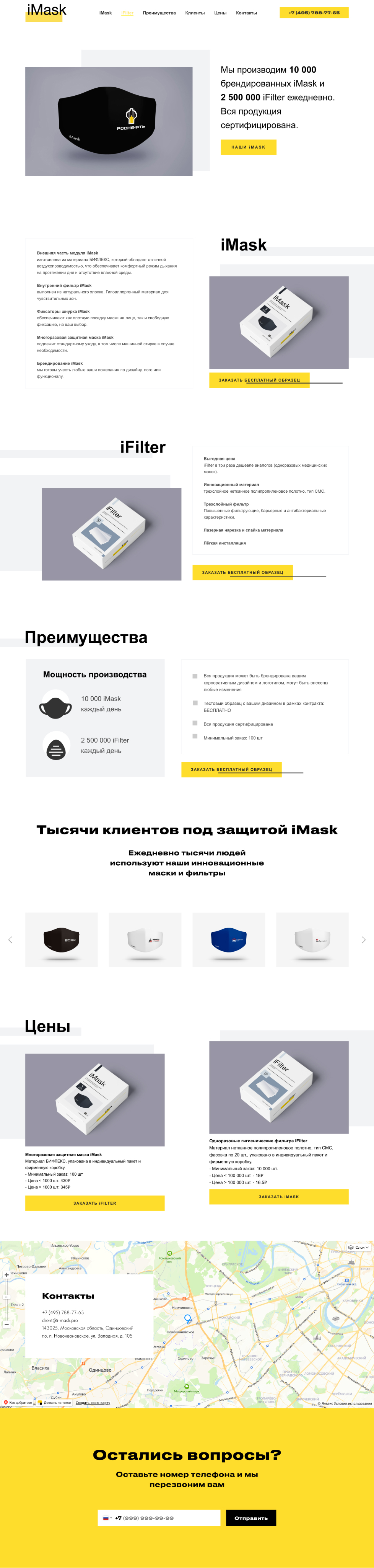 Создать лендинг для продвижения и продажи медицинских масок imask с целью увеличения объема продаж.